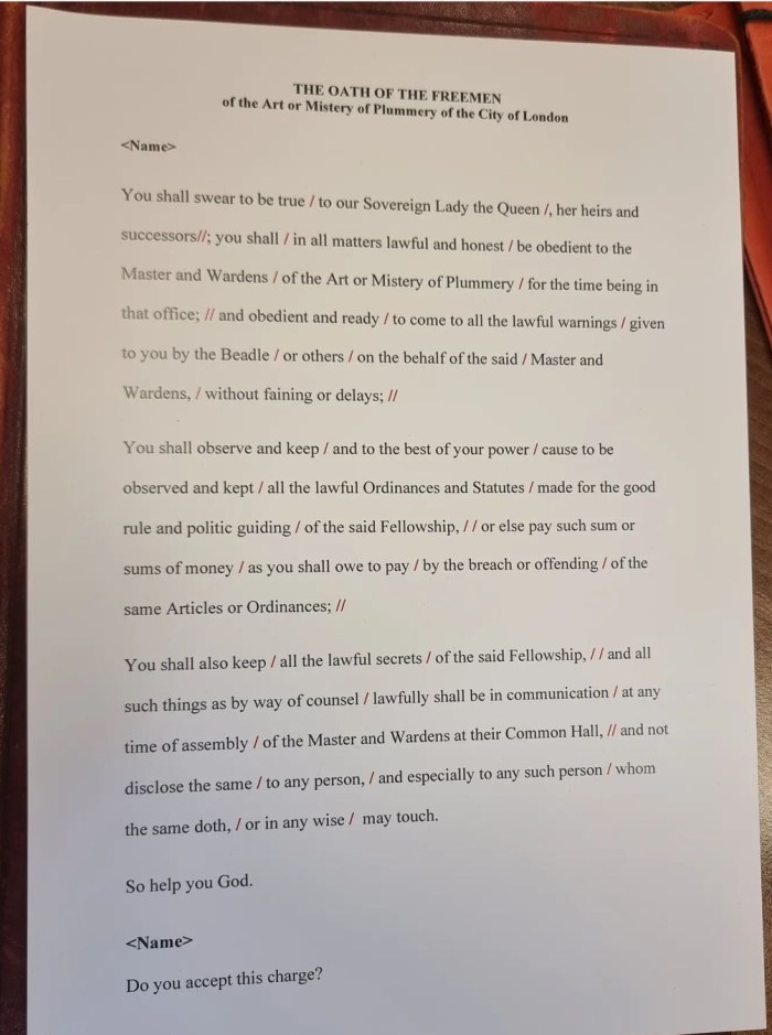 Once all of the prior stages are completed you can then be invested as a Liveryman of the Worshipful Company of Plumbers.