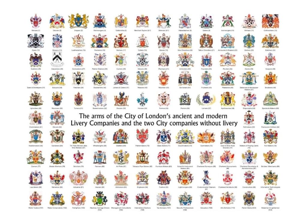 There are 113 Livery Companies as of 2026. The term livery originated in the designed form of dress worn by retainers of a nobleman and then by extension to special dress to denote status of belonging to a trade. They are unique to London and began to be established in the 12th century as a way to guarantee that those who members hired were qualified and the goods they produced were reputable. Not only this however, being a Liveryman offered protection and had added benefits, such as the right to trade within the City of London, now commonly described as the Square Mile, an area of central London around Chancery Lane. The reason that Livery Companies are also known as Worshipful Companies, is because early companies also had religious ties, with a chosen Patron Saint and association with a local church/monastery.