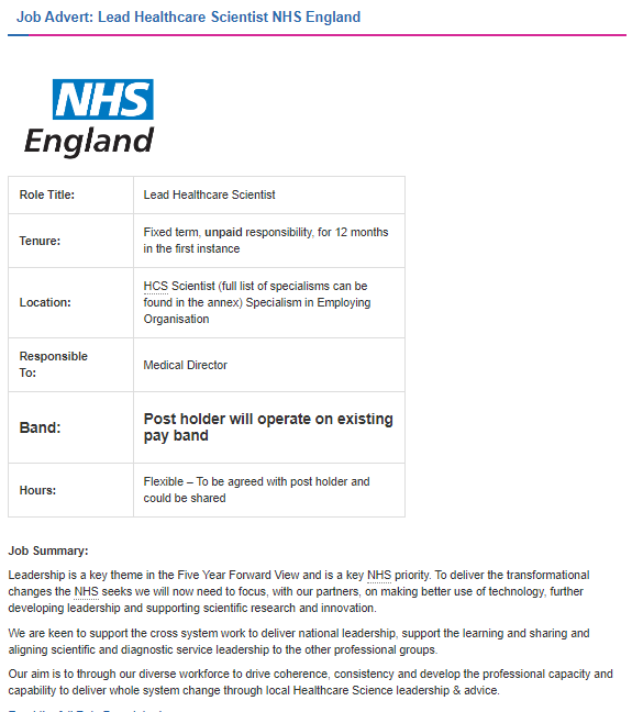 To continue the theme of this week, from my experience no two Trust Lead Healthcare Scientist jobs are the same. I share my post with the wonderful Dr Stuart Adams, and even our experience of the post is different because we lead on different things.