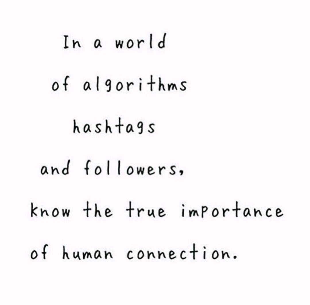 It feels like it’s tick boxing, and worse than that, deliberately manipulating perceptions to cause us to be drawn into some form of unwinnable race where everyone is perceived as winning, but in reality we’re all drowning and not forming the real connections that could throw us a life line. I’m not talking about this at a person based level, but at a platform level. I just think it’s easy to get caught up without even realising, and to think that everything you are seeing is an accurate portrayal of the reality without undertaking the necessary sense checking on what is in front of you.
