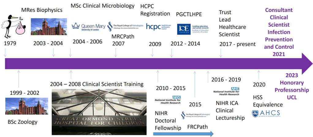 In 2015 she successfully attained Fellowship of the Royal College of Pathologists and was appointed the first UK based International Ambassador for the Society of Healthcare Epidemiology of America. In 2016 she became a Fellow of the Higher Education Academy and was appointed as a NICE Expert Advisor in Infection Prevention and Control. She became a Consultant Clinical Scientist and Deputy Director of Infection Prevention and Control in 2021.